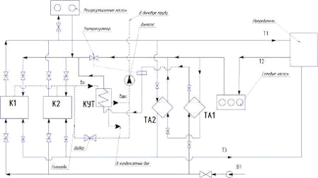 схема утилизатора на основе двух последовательно включённых по уходящим газам и