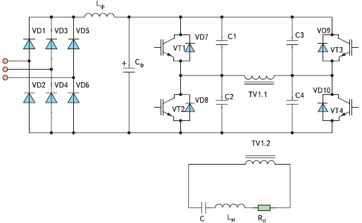 Силовая часть преобразователя частоты для индукционного нагрева средней мощности и средней частоты