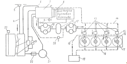 через сепаратор 21 пропускается топливо, предварительно нагретое в