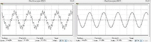 Генератор напряжения XFG1 выдает суносоидальный сигнал с