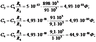 схеме частотно-компенсированного делителя напряжения на высокостабильных резисторах,