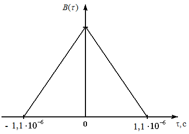 начерчен график корреляционной функции модулирующего сигнала В(τ), приведено
