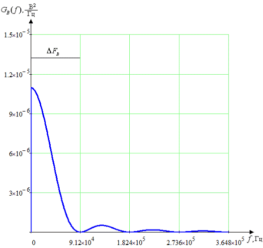 выражение и начерчен график спектральной плотности мощности модулирующего