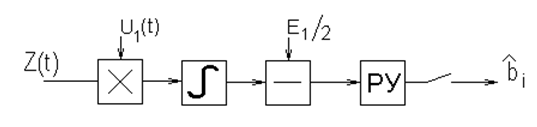 оптимального приема, нарисована структурная схема оптимального демодулятора,