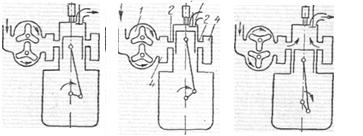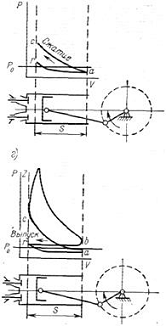на вертикальной линии, сила Р давления газов, действуя на шатун и кривошип,
