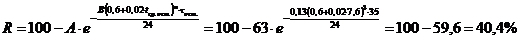 бетона (%) за период остывания: