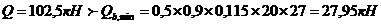 Поперечная сила от полной нагрузки Q=27,7 кН
