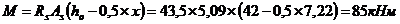 от границы приложения силы N с рабочей высотой сечения