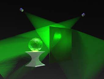 ранее (при съёмке) объектом, формируется его объёмное (стереоскопическое)