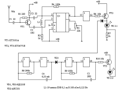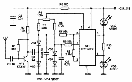 Рис.3. Блок-схема индикатора электромагнитных излучений.
