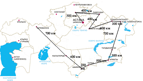 пункта (Актюбинск - Алматы - Астана). Выбранная между ними магистраль