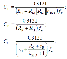 СБ = 10 мкФ, СК = 2,2 мкФ, СЭ = 100 мкФ.