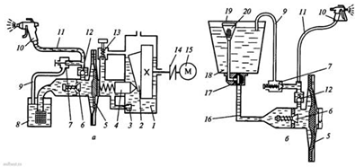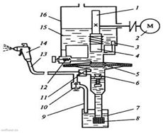 13 - шланг высокого давления; 14 - пистолет-распылитель; 15 - масло; 16 -