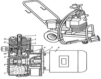 10 - перепускной клапан; 11 - нагнетательный клапан; 12 - регулятор давления;