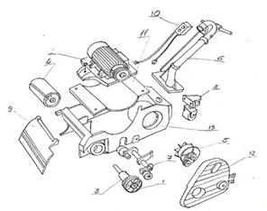 14. Сливная пробка; 15. Кривошипно-шатунный механизм; 16. Электродвигатель; 17.