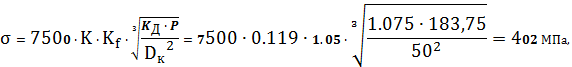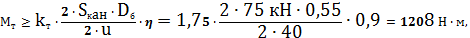 коэффициент выбора диаметра, который зависит от режима работы механизма.