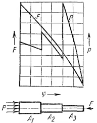 секций давление сначала возрастает скачкообразно (из-за меньшей площади), затем