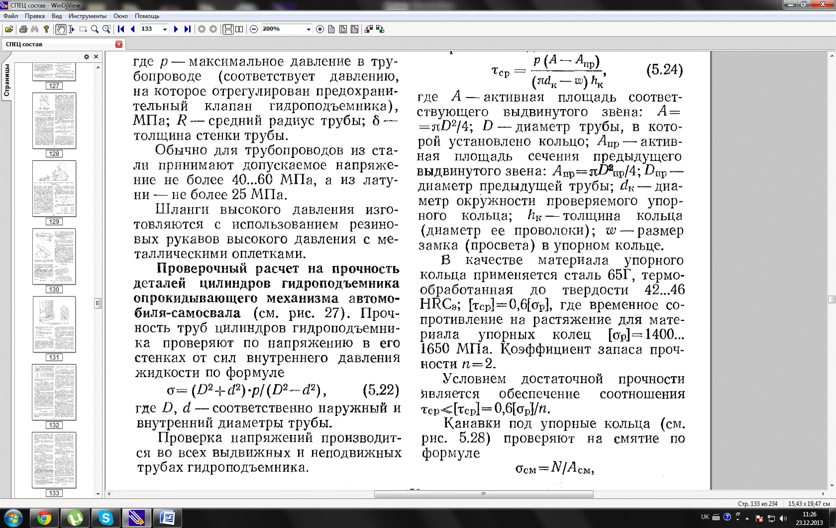 Прочность труб цилиндров гидроподьёмника