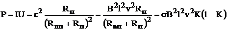 получаем условие максимума: K = 0,5 т.е. максимальная мощность в случае
