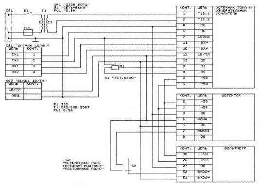 схеми вимірювальних приладів магнітного поля структурно є однаково і
