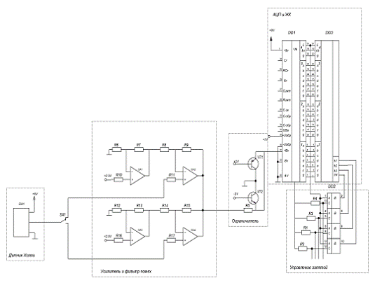 діапазон виміру складе 20 мТл на всю шкалу. ОУ 1СЗ - а підсилює сигнал до