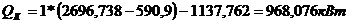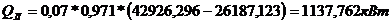 теплову потужність випарної поверхні нагріву допоміжного котла QК,
