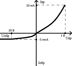 Рис. 2 ВАХ выпрямительного диода ГД107Б.