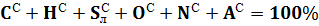 действительно горючими ее элементами являются только С, Н и Sл. Состав горючей