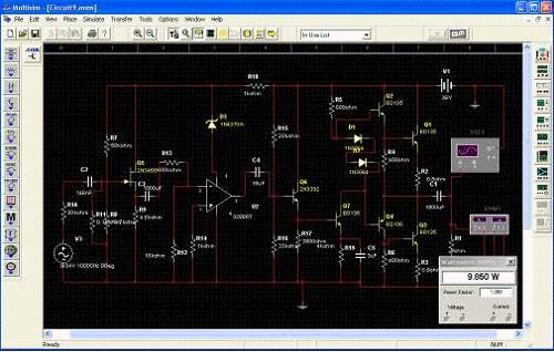 Рис. 6 Схема усилителя в программе Electronics Workbench.