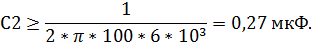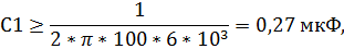 .4 Расчет емкостей для ФВЧ для входа и выхода.