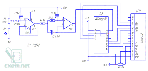 схеми живляться від напруги в +5 В (в т.ч. на вході АЦП UREF + повинно бути