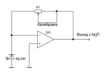 використанням фотодіода і операційних підсилювачів показана на мал. 10.