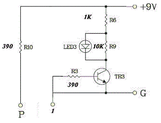 светодиод-резистор. Светодиод загорается, сигнализируя о наличии воды.