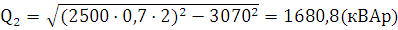 QКБ.НН.=2388,3-1680,8=350,5(кВАр)