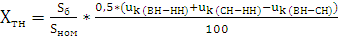 Uн1=10кВ, Uн1=0,4кВ, uк=4,5%.