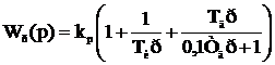 были изменены до значений kp = 0,15, Ти = 50 с, Тд = 0,1 с.