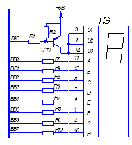 подавая сигнал "0" на базу транзисторов VT2-VT7 (КТ501В) можно