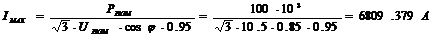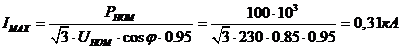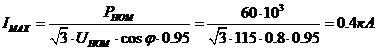допустимому току при максимальной нагрузке на шинах, равной току наиболее