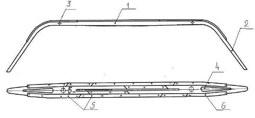 накладки 5, устанавливаемые на полоз, должны быть толщиной 6 мм и шириной 30 мм.