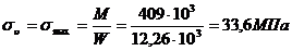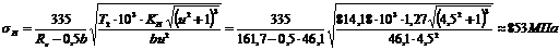 Считаем, что нормальные напряжения от изгиба изменяются по