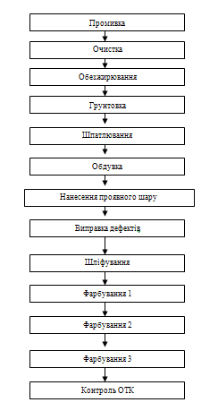 Технологічний процес сушіння кузовів пасажирських вагонів після фарбування