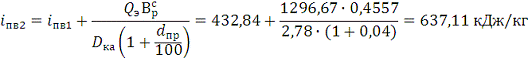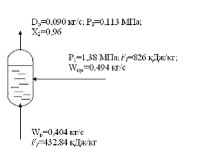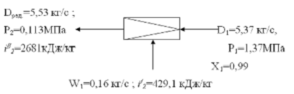 Сухость пара на выходе из расширителя непрерывной продувки х2=0,96.