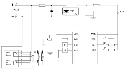 микроконтроллера подается сигнал от реле включения двигателя. Микроконтроллер