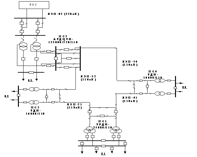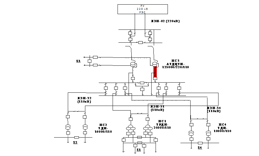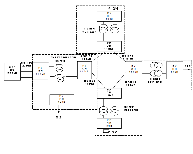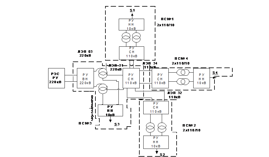 энергосистема 110-220 кВ, обеспечивающая электрической энергией четырех