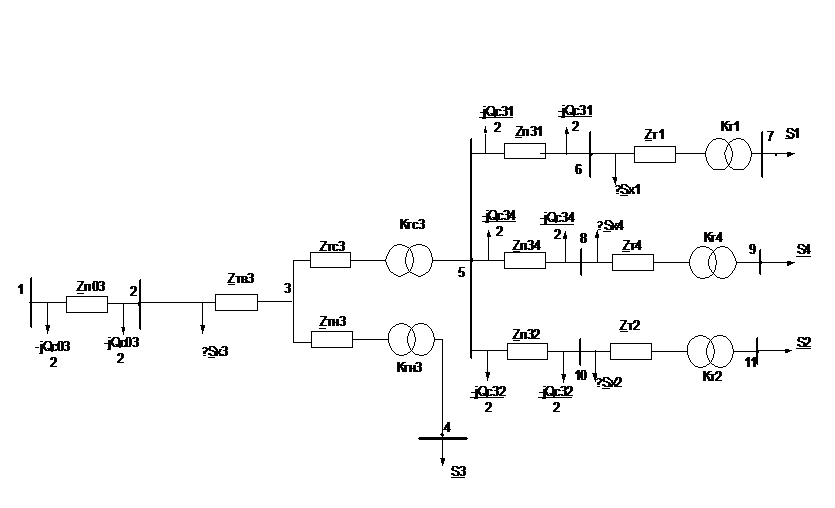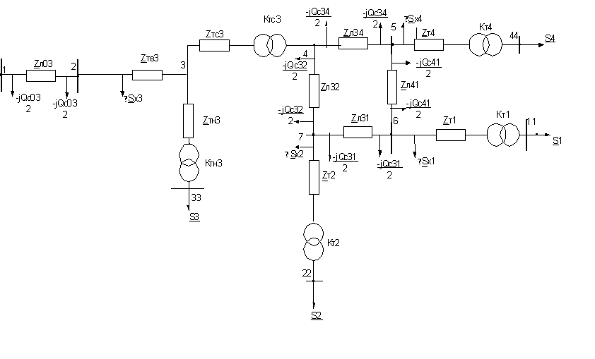 оборудования (трансформаторы подстанций 2,3,4), одинаковое сечение проводов