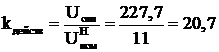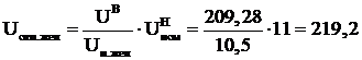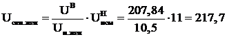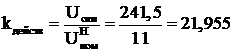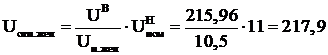 Выполним расчет без регулировки с нулевыми отпайками. Напряжение