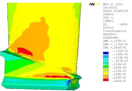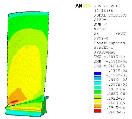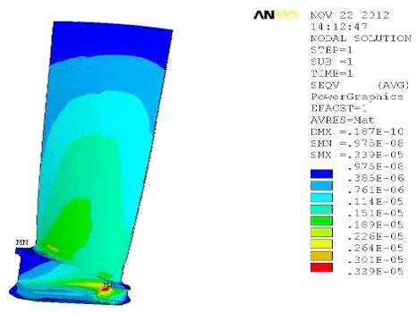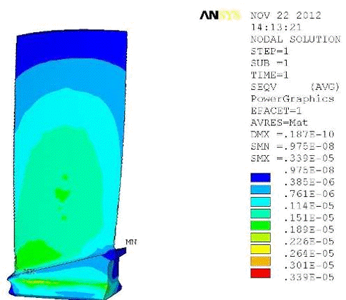 напряжения лопатки находятся в пределах допустимых напряжений.