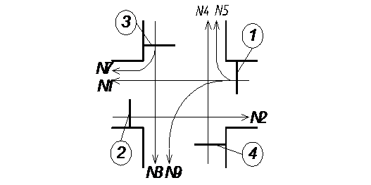Рисунок 1- Схема перекрестка