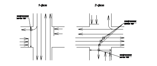 расположения конфликтных точек до введения светофорного регулирования;