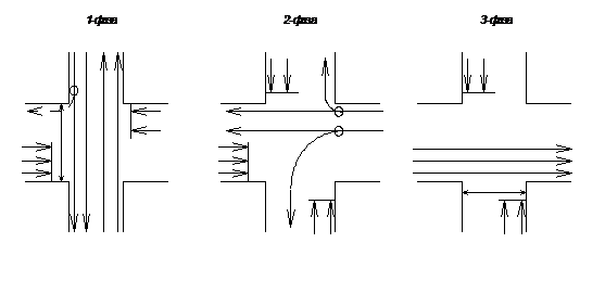 2 варианта схемы пофазного разъезда на перекрестке. Длительность цикла